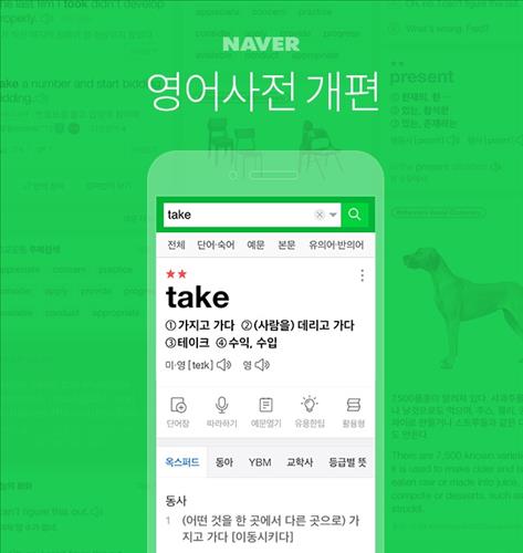 (서울=연합뉴스) 윤보람 기자 = 네이버는 모바일 영어사전을 더 효과적으로 활용할 수 있도록 모바일에 최적화한 구조로 사용자 환경(UI)을 개편했다고 21일 밝혔다.