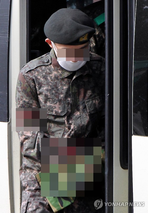 | △ GOP 총기난사 임병장, 항소심서도 사형 구형 (서울=연합뉴스) 지난해 6월 강원도 고성군 22사단 GOP(일반전초)에서 총기를 난사, 장병 5명을 살해하고 7명을 다치게 한 혐의로 기소된 임모(23) 병장이 21일 군사법원 항소심에서도 사형을 구형받았다. 지난 2월 3일 임병장이 재판을 받기 위해 호송버스에서 내리고 있다. |