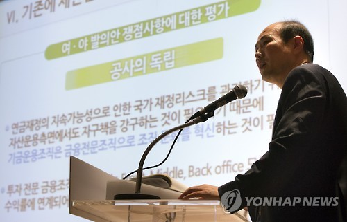 이준행 서울여대(경제학과) 교수는 "기금운용조직을 독립시켜 전문성을 확보하는 지배구조를 갖추는 것이 이상적"이라며 "기금운용조직이 국민연금공단에서 예산과 인사의 독립성을 확보하는 것이 중요하다"고 말했다.