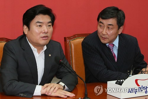 | △ 여야 원내대표 회동 (서울=연합뉴스) 진성철 기자 = 새누리당 원유철 원내대표(왼쪽)와 새정치민주연합 이종걸 원내대표가 21일 국회에서 추경 일정과 국정원 해킹 의혹에 대해 논의하고 있다. zjin@yna.co.kr |