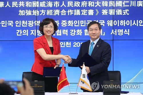 한·중 FTA 지방협력시대 활짝…인천-웨이하이 맞손