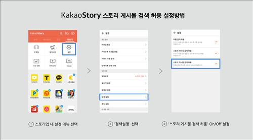 카카오검색 노출과 관련해서는 이용자의 사생활 보호를 위해 이름이나 스토리 게시물 검색 허용 여부, 공개 범위 등을 직접 설정할 수 있도록 했다.