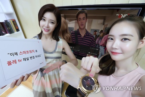 (서울=연합뉴스) 현윤경 기자 = 리모컨이 없어도 스마트워치를 매개로 목소리나 손짓으로 올레tv를 제어할 수 있게 됐다.