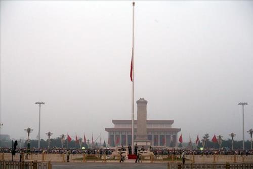 고인을 애도하기 위해 베이징의 톈안먼(天安門)과 신화먼(新華門), 인민대회당, 외교부, 각 성·시·자치구 정부 소재지, 홍콩·마카오 특별행정구, 재외공관 등에서 일제히 조기가 게양됐다.