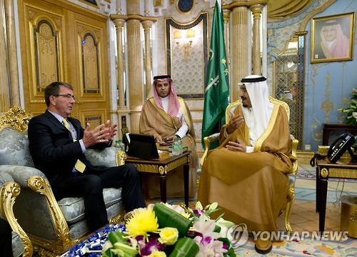 (두바이=연합뉴스) 강훈상 특파원 =살만 빈압둘아지즈 알사우드 사우디아라비아 국왕이 22일(현지시간) 사우디를 방문한 애슈턴 카터 미 국방장관과 만나 이란 핵협상 타결 이후 중동 현안을 논의했다고 현지언론들이 보도했다.