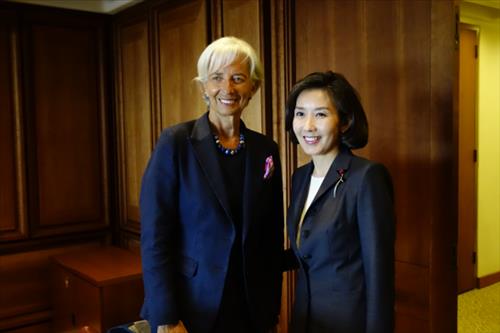 | △ 크리스틴 라가르드 국제통화기금(IMF) 위원장(왼쪽)과 만난 나경원 국회 외교통일위원장. |