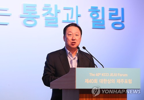(제주=연합뉴스) 옥철 기자 = 대기업과 중소·중견기업을 아우르는 최대 경제단체인 대한상공회의소의 박용만 회장(두산 회장)이 미국 헤지펀드 엘리엇의 삼성 공격과 같은 사태가 재발하지 않도록 우리 기업의 자성과 경영권 보호장치 도입을 촉구했다.