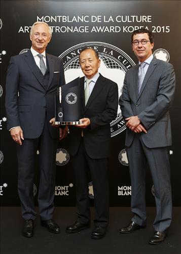 | △ 2015 몽블랑 문화예술 후원자상 시상식에서 수상자를 축하하고 있다. (좌측부터) 몽블랑 문화재단 루츠 베뜨게 이사장, 김동호 부산국제영화제 명예집행위원장, 몽블랑코리아의 실방 코스토프 지사장 <<몽블랑코리아 제공>> |