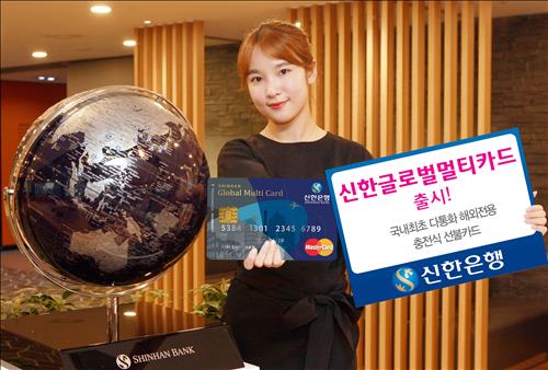 (서울=연합뉴스) 고동욱 기자 = 신한은행은 최대 10개 통화를 하나의 카드에 충전할 수 있는 해외전용 선불카드 '신한글로벌멀티카드'를 출시했다고 24일 밝혔다.