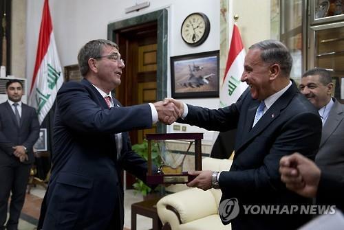 중동을 순방 중인 카터 장관은 23일 하루 일정으로 이라크를 방문해 하이데르 알 아바디 이라크 총리와 칼리드 알 오베이디 이라크 국방장관을 만났다. 카터 장관의 이라크 방문은 지난 2월 취임 후 처음이다.