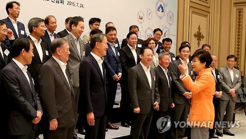(서울=연합뉴스) 산업팀 = 박근혜 대통령과 대기업 총수들이 현 정부 들어 세번째 청와대 회동을 했다.