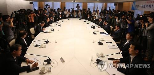 | △ (서울=연합뉴스) 한종찬 기자 = 27일 서울 중구 세종대로 대한상공회의소에서 열린 청년 고용절벽 해소를 위한 민관합동 대책회의에서 박용만 대한상의 회장이 모두발언을 하고 있다. |