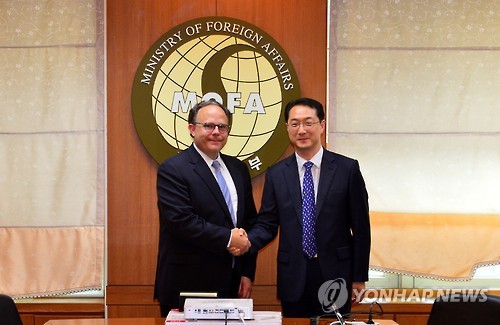 사일러 특사는 전날 방한해 이날 우리측 카운트파터인 김건 국장을 비롯해 권용우 외교부 평화외교기획단장을 만나는 데 이어 황준국 본부장도 예방했다.