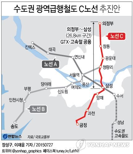 국토교통부는 GTX C노선(의정부∼군포 금정역)을 재검토한 결과 수서발 수도권고속철도 의정부 연장사업과 연계해 추진하기로 잠정 결론 내고, 8월 말 기획재정부 예비타당성 조사에 재도전할 것으로 28일 확인됐다.
