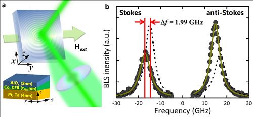 연구진은 중금속인 플래티늄 박막 위에 강한 자성체인 코발트를 1∼2㎚로 입힌 시료와 코발트 합금(CoFeB)을 같은 두께로 입힌 시료 등 두 가지 물질로 '브릴루앙 광 산란' 실험을 진행했다.