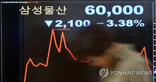 (서울=연합뉴스) 강종훈 기자 = 삼성물산[000830] 주가가 28일 제일모직과의 합병 관련 주식매수청구권 행사가격 아래로 하락했다.