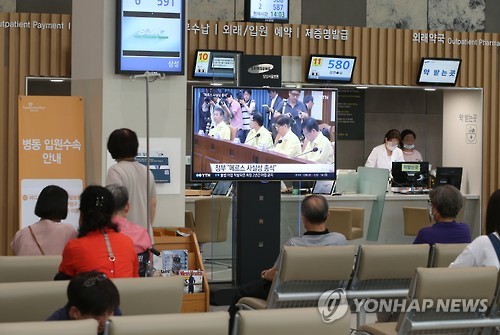 | △ 정부 메르스 종식선언 뉴스 보는 내원객들 (서울=연합뉴스) 임헌정 기자 = 정부가 중동호흡기증후군(메르스) 사태가 사실상 끝났음을 선언한 28일 서울 일원동 삼성서울병원 로비에서 내원객들이 메르스 종식 관련 방송뉴스를 지켜보고 있다. 정부는 지난 5월20일 첫 환자가 메르스 확진 판정을 받은 이후 69일 만에 사실상 메르스 종식을 선언했다. 2015.7.28 kane@yna.co.kr |