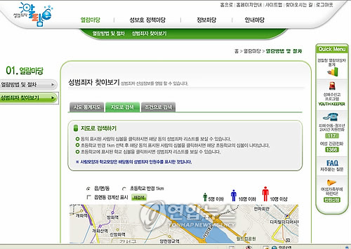| △ 성범죄자 정보 제공 '성범죄자 알림e'(연합뉴스 자료사진) |
