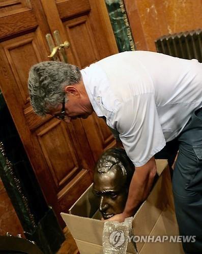 이 흉상은 약 40년간 이 시청 회의실을 지키고 있었다.