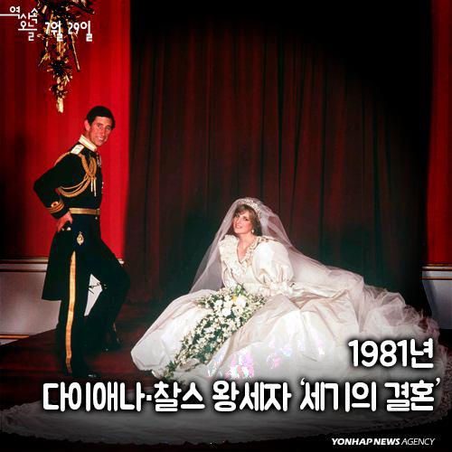 (서울=연합뉴스) 20살 금발 신부는 젊음만으로도 빛이 났다. 케임브리지대를 졸업한 32살 신랑은 왕위 계승자로서 자신감이 넘쳤다. 신랑, 신부가 영국 런던 세인트 폴 성당 복도를 행진하자 7.2m 길이의 웨딩드레스 자락이 물결 쳤다. TV 중계로 결혼식을 지켜본 전 세계 7억5천만여명은 신혼부부를 축복했다.