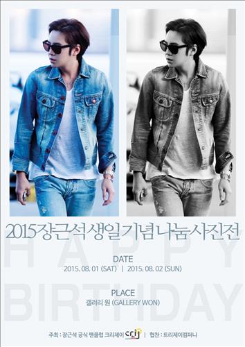 장근석의 팬클럽 크리제이는 8월4일 장근석의 생일을 앞두고 8월 1~2일 서울 강남구 청담동 갤러리 원에서 '2015 장근석 생일 기념 나눔 사진전'을 연다고 홍보사 와이트리컴퍼니가 30일 밝혔다.