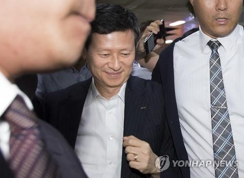 | △ (서울=연합뉴스) 윤동진 기자 = 롯데그룹의 후계를 놓고 일본에서 '왕자의 난'을 벌인 신동주 전 일본 롯데홀딩스 부회장(가운데)이 29일 오후 김포공항 국제선 입국장을 통해 귀국하고 있다. 2015.7.29 |