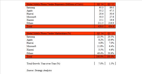 그러나 작년 2분기보다 판매량은 630만대, 점유율은 1.8%포인트 줄어든 터라 삼성으로선 1위 수성이 마냥 즐겁지만은 않다.
