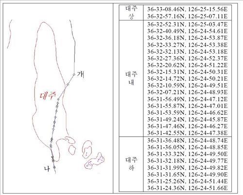 그러면서 상펄어장(지도 상 대주로 표기)을 중심으로 바다 위에 두 지점을 찍은 뒤 이를 기준으로 오른쪽은 홍성군, 왼쪽은 태안군 관할이라고 결정했다.
