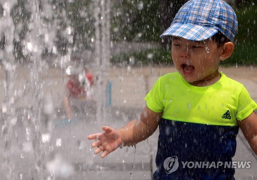 | △ 분수대에서 더위사냥 (춘천=연합뉴스) 박영서 기자 = 30일 오후 강원 춘천시 근화동 공지천 유원지 분수대에서 한 아이가 물놀이를 하고 있다. 이날 강원도는 낮 최고기온이 강릉 36.5도, 동해 35.8도, 삼척 35.6도, 원주 34.8도, 춘천 32.8도까지 올라갔다. 강원지방기상청은 강릉·삼척·동해 평지에 폭염경보를 발효하고, 양양·고성·속초·홍천 평지, 영월, 원주, 횡성, 춘천을 포함한 8개 시·군에 폭염주의보를 내렸다. 2015.7.30 conanys@yna.co.kr |