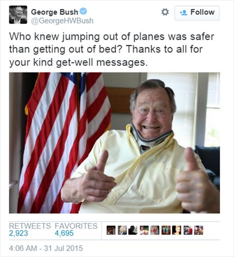 목뼈 다친 '아버지' 부시, 트위터서 감사 인사