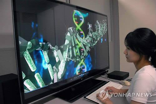 | △ (대전=연합뉴스) ETRI(한국전자통신연구원) 연구원이 슈퍼컴퓨터 '마하'를 이용해 유전체를 분석하는 장면을 컴퓨터 그래픽(CG)으로 보여주고 있다. ETRI는 2011년 개발한 마하를 이용해 암 등의 질병을 예측하는 국제공동연구에 참여한다고 20일 밝혔다. 2014.8.20. <<지방기사 참조, ETRI>> jyoung@yna.co.kr (끝) |