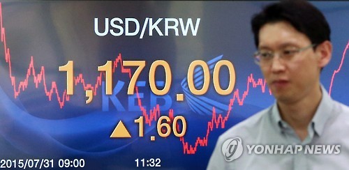원/달러 환율이 종가기준으로 1,170원대를 기록한 것은 2012년 6월 12일(종가 1,170.5원) 이후 3년 1개월여 만이다.