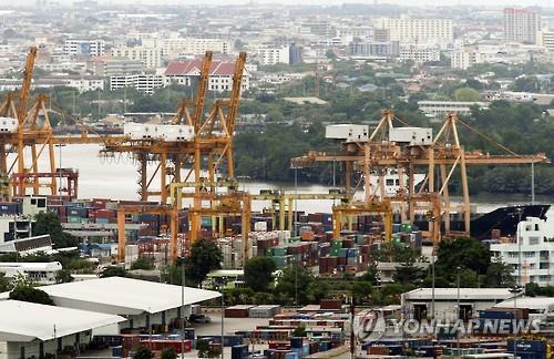 | △ 태국 방콕 항구에 컨테이너들이 쌓여 있다.(EPA=연합뉴스 자료사진) |