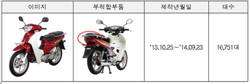 대림자동차 CA110오토바이 1만6천여대 리콜