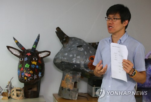 | △ 설악산 오색 케이블카 사업 부결 촉구 기자회견 (서울=연합뉴스) 김도훈 기자 = 3일 오전 서울 종로구 녹색교육센터에서 황인철 녹색연합 평화생태팀장이 설악산 오색케이블카 사업 부결 촉구 기자회견을 하고 있다. |