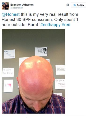 여성 린지 마셜은 햇볕에 익은 피부 사진과 함께 '이렇게 되고 싶지 않다면 절대 이 제품을 사지 말라'고 강조했고, 남성 브랜든 애서튼은 자신의 민머리에 SPF30을 바르고 1시간 동안 바깥에 있었더니 이렇게 익었다며 머리 사진을 보여줬다.