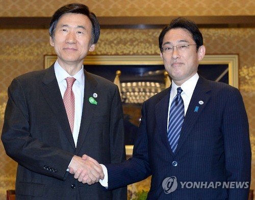 | △ 지난 6월 열린 한일 외교장관 회담에서의 윤병세 외교부 장관(왼쪽)과 기시다 후미오(岸田文雄) 일본 외무상의 모습. (연합뉴스 자료사진) |
