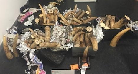 스위스 세관은 여행가방에 넣기 알맞게 톱으로 잘진 코끼리 상아들을 보안검색을 하는 과정에서 발견했으며, 또 다른 여행가방에서는 사자의 송곳니와 발톱 등도 나왔다.