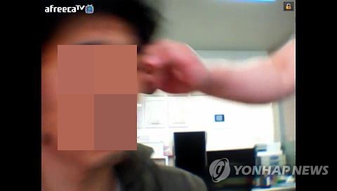 | △ 제자가 마음에 들지 않는다는 등의 이유로 수년간 가혹행위를 일삼은 경기도 모 대학교 교수 A(52)씨가 학교에서 파면 결정을 받았다. 사진은 A씨 등이 인터넷 방송을 통해 제자 D씨를 폭행하는 장면을 실시간으로 중계하는 화면 캡쳐. (연합뉴스 자료사진) |