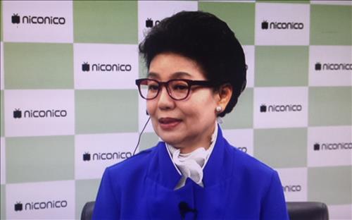 | △ 니코니코의 인터뷰에 출연한 박근령 씨 모습(니코니코 방송 장면 촬영) |