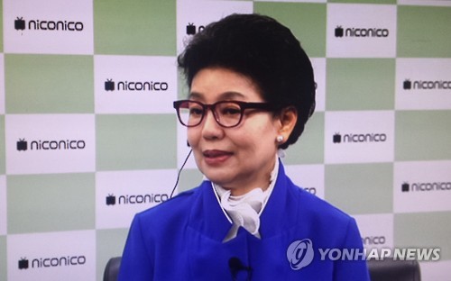 | △ 일본 동영상 사이트 출연한 박근령 (도쿄=연합뉴스) 박근혜 대통령의 여동생 근령 씨는 4일 오후 일본 동영상 사이트 니코니코에서 방영된 인터뷰에서 "우리가 위안부 여사님들을 더 잘 챙기지 않고 자꾸 일본만 타박하는 뉴스만 나간 것에 대해 죄송스럽게 생각한다"고 말했다. 사진은 4일 방영된 니코니코의 박근령 씨 인터뷰 장면 (니코니코 방영 캡처) |