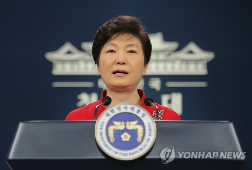 | △ 박 대통령, 대국민 담화 발표 (서울=연합뉴스) 이정훈 기자 = 박근혜 대통령이 6일 오전 청와대 춘추관 브리핑룸에서 대국민 담화를 발표하고 있다. |