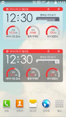 올레 고객센터 위젯으로는 데이터·음성·문자 사용량을 확인하고 요금을 조회할 수 있다. 터치 한 번으로 멤버십 카드를 꺼내 쓸 수 있고 요금제와 부가서비스도 검색할 수 있다.