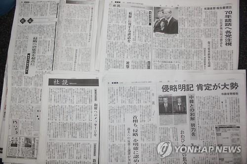 | △ 아베 담화를 소재로 한 7일자 일본 주요 신문 사설들. |