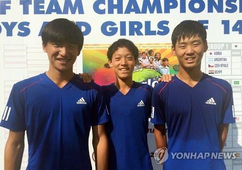 (서울=연합뉴스) 김동찬 기자 = 한국 14세 이하 남자 테니스 국가대표가 2015 월드주니어 테니스 파이널 우승을 차지했다.