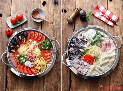 토마토부대찌개에는 다이어트 식품으로 인기가 있는 토마토에 각종 채소, 홍합, 스파게티면을 담아 부대찌개 특유의 짠맛을 줄였다.