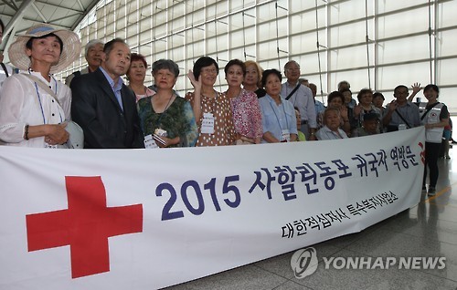 | △ 영주 귀국 사할린 동포 역방문 (영종도=연합뉴스) 김주성 기자 = 대한적십자사의 영주귀국지원사업을 통해 고국에 돌아와 정착한 사할린 동포들이 10일 오전 인천공항을 통해 역방문 출국을 하기에 앞서 기념촬영을 하고 있다. 대한적십자사는 제2의 이산의 아픔을 겪는 영주 귀국자들을 위해 1~3개월간 사할린, 블라디보스토크, 하바로프스크 등 현지에서 체류할 기회를 제공해오고 있다. 2015.8.10 utzza@yna.co.kr |