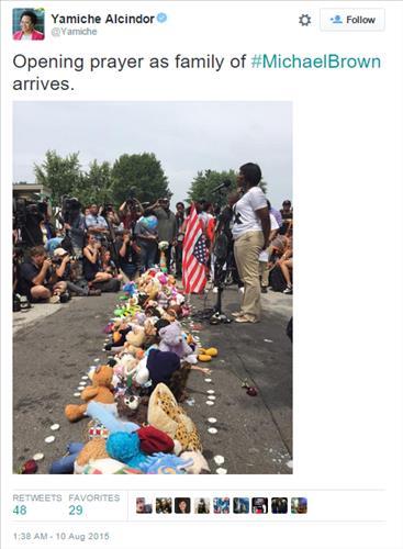 미국 '흑백 차별의 진앙'인 이곳에서 브라운의 사망을 추모하고 퍼거슨 사태 1주기를 기리는 기념식이 열렸다.