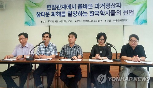 (서울=연합뉴스) 고은지 기자 = 한국 중견학자 700여명이 광복 70주년과 한일수교 50주년을 맞아 양국 간 올바른 과거 청산과 진정한 화해를 한목소리로 촉구했다.