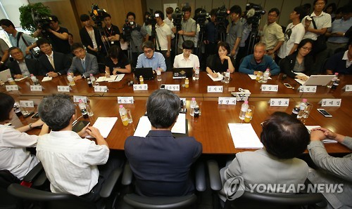 | △ 지난달 23일 서울 서대문구 법무법인 지평 회의실에서 열린 삼성전자 반도체 공장 근로자 직업병 보상 등에 대한 조정안 발표. (연합뉴스 자료사진) |